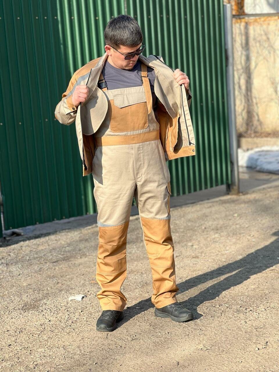 Костюм состоит из куртки и полукомбинезона бежевый песочный.